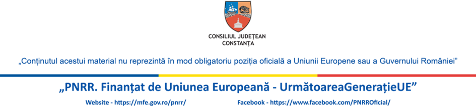 E-mail: consjud@cjc.ro Pentru informații suplimentare despre proiect și progresul acestuia, vă invităm să accesați site-ul oficial: www.cjc.ro sau să urmăriți actualizările pe pagina oficială de Facebook: www.facebook.com/ConsiliulJudeteanConstanta