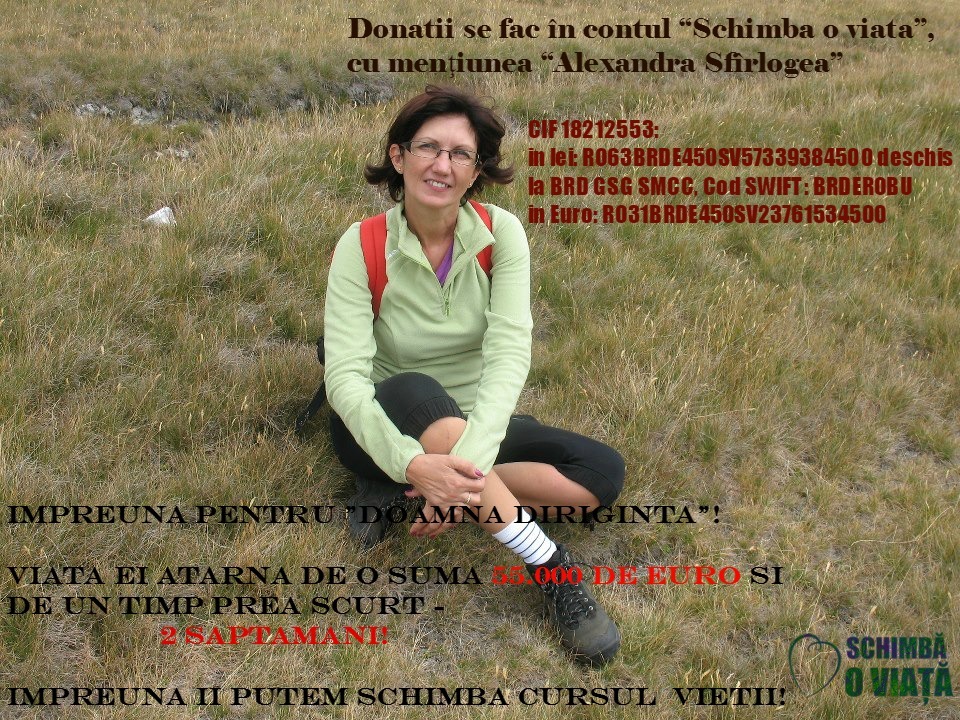Dacă vreţi să participaţi la superbul efort al elevilor, colegilor şi prietenilor profesoarei, aveţi la dispoziţie următorele conturi bancare: