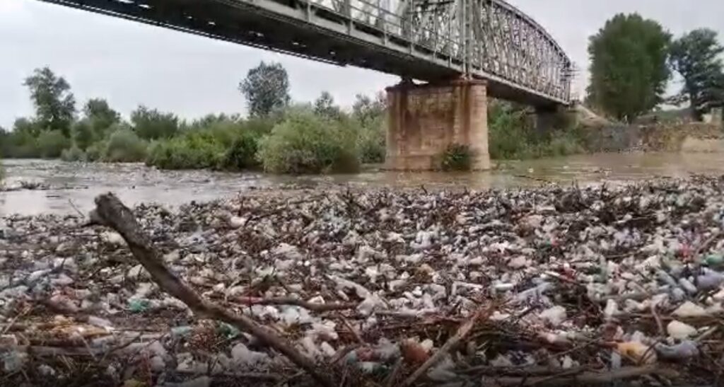 Oltețul, afluent al Oltului, s-a umflat de la ploile abundente din ultimele zile și a adus, până la orașul Balș, tone și tone de gunoaie și sticle de plastic.