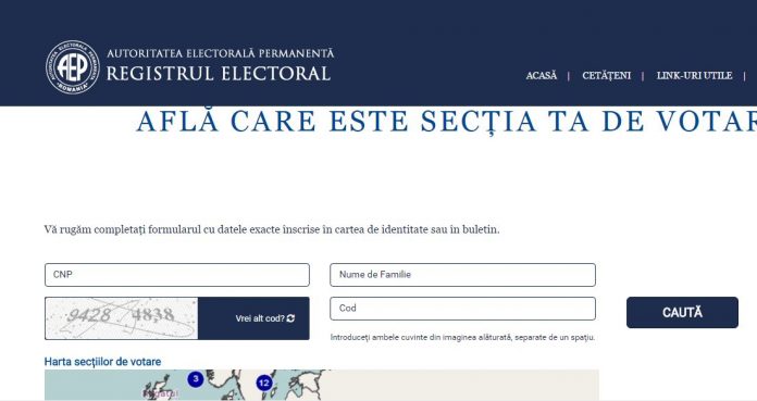 Autoritatea Electorală Permanentă a dezvoltat o platformă online unde fiecare român cu drept de vot poate afla secția de care aparține și la care își poate alege parlamentarii pe 11 decembrie.