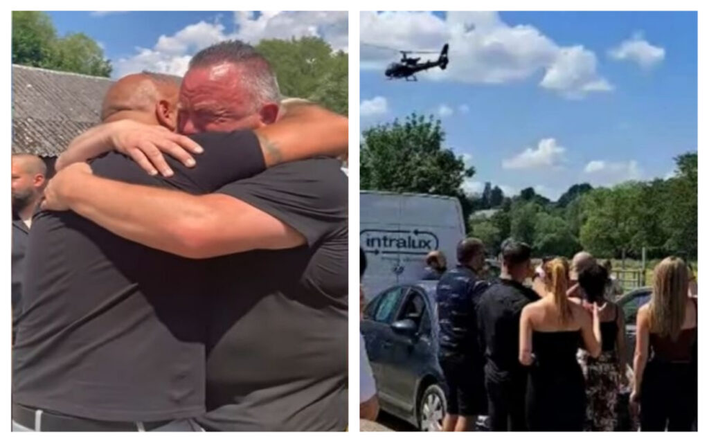 David Baerten, care este cunoscut sub numele de Ragnar le Fou online și are 162.000 de urmăritori pe TikTok, a sosit la înmormântare cu o echipă de filmare într-un elicopter. Cei prezenți au fost șocați, iar mulți au izbucnit în lacrimi.