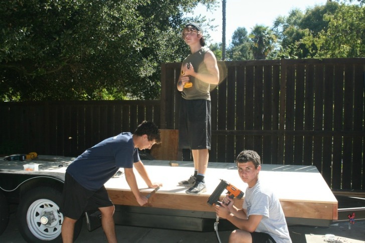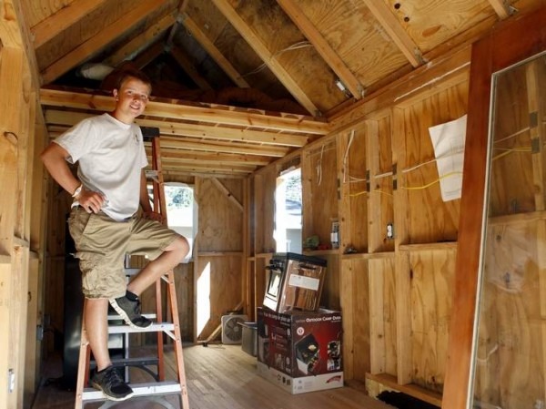 Austin Hay a început să lucreze la casa sa pe roţi încă de la vârsta de 16 ani. A investit 2.000 de dolari într-o platformă pe roţi şi a ridicat pe aceasta o casă perfectă pentru nevoile sale.