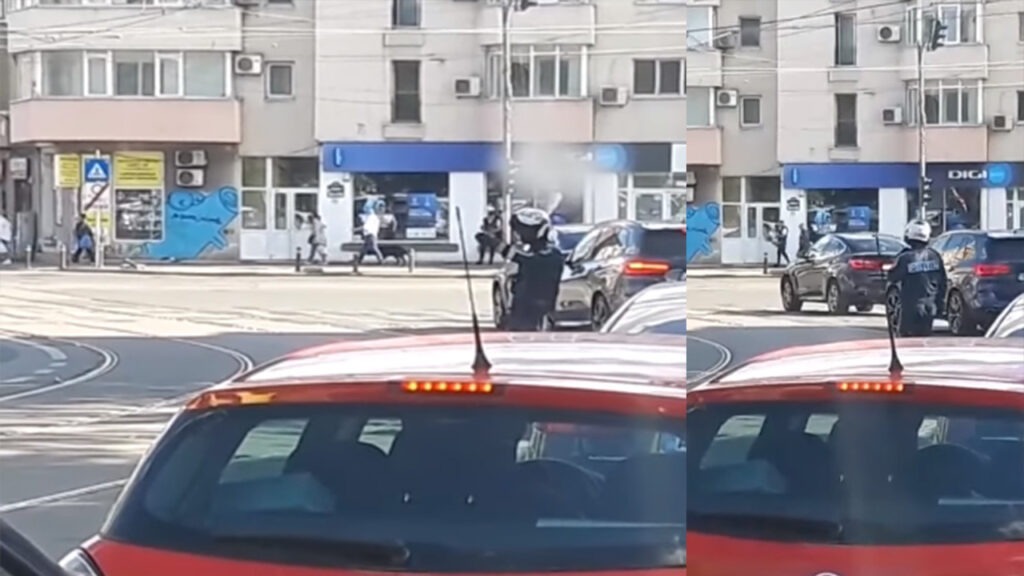 Un clip în care apare un polițist care dirijează circulația într-o intersecție din Capitală a ajuns viral pe rețelele sociale. Acesta nu a lăsat să meargă mai departe niciun șofer care a fentat coloana mare de mașini mergând pe linia de tramvai.